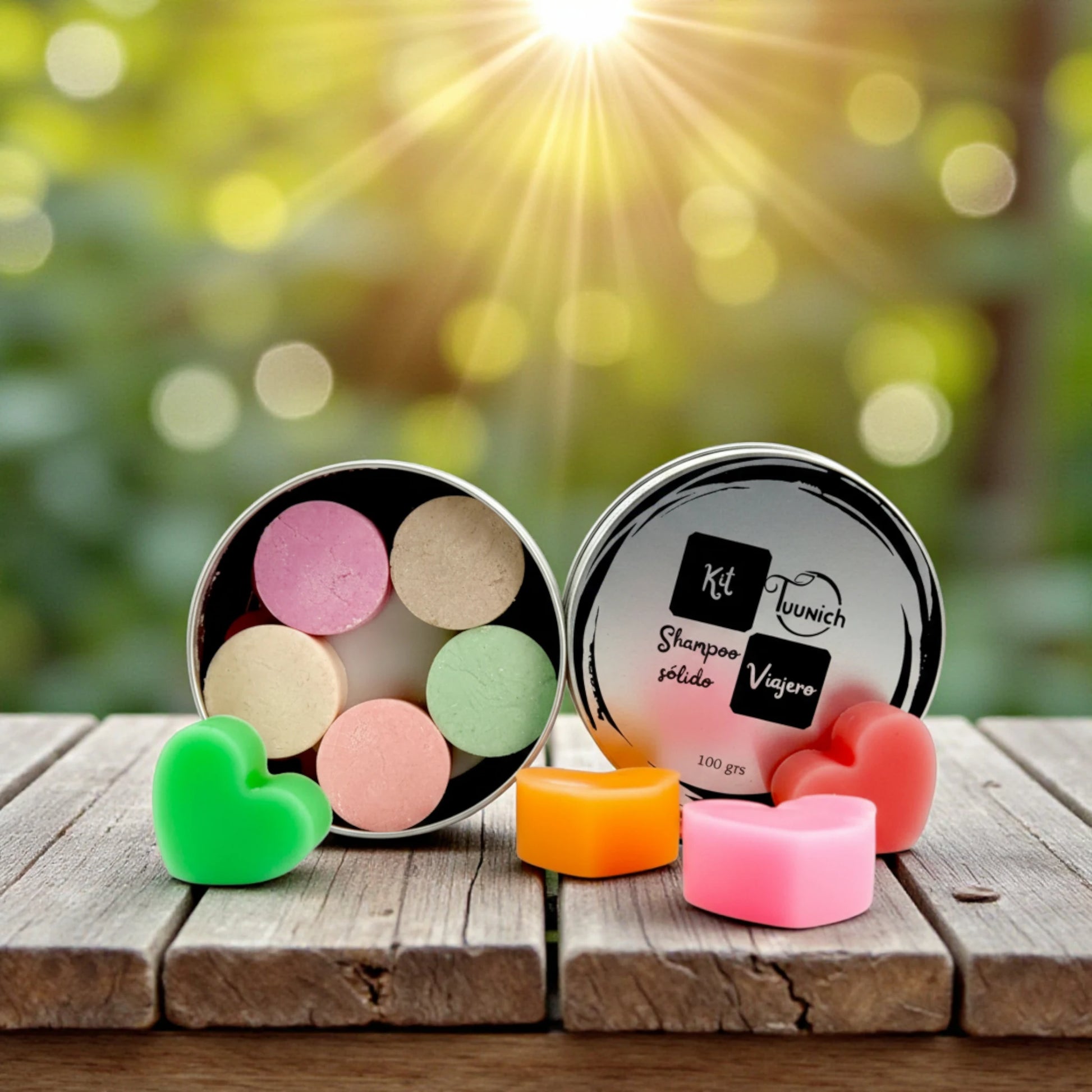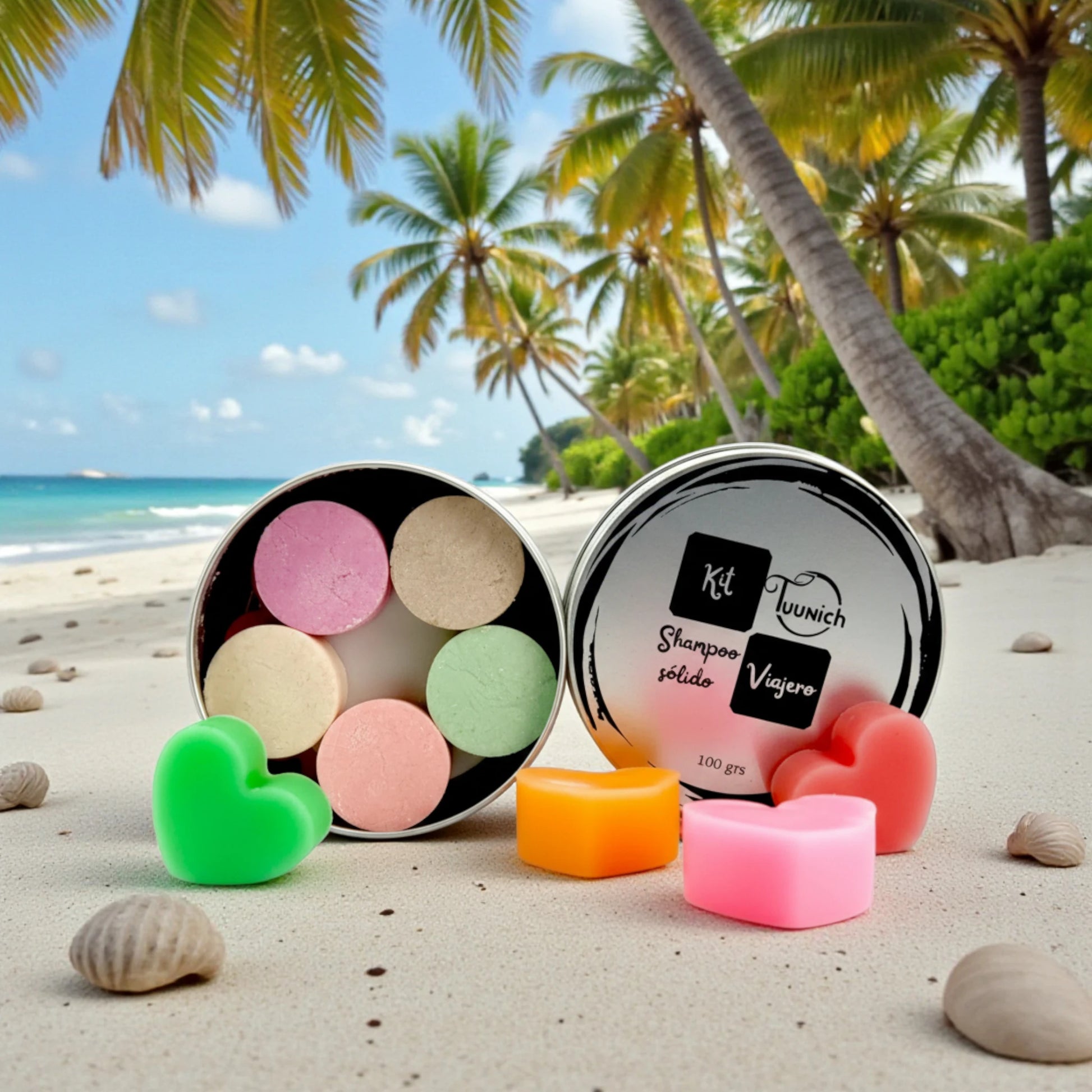La lata contiene 5 shampoos y 5 acondionadores en presentaciones minis de 10 grs. Perfectos para que los uses en tus viajes.