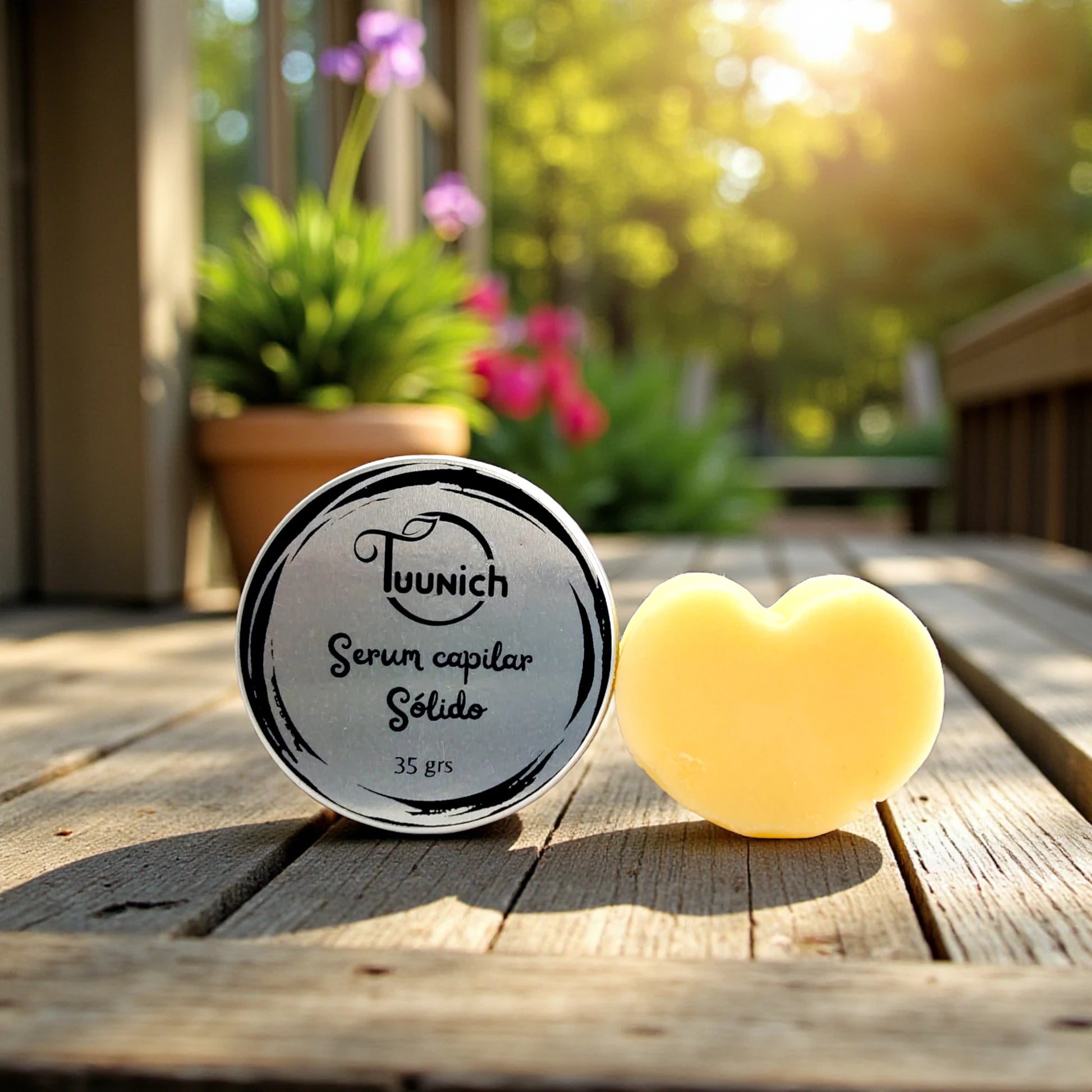 Modo de uso: Con tus manos frota un poco el sérum sólido para que este se empiece a deshacer y puedas aplicar el serúm en tu cabello de medias a puntas. Dejar actuar de 2 a 5 minutos y enjuagar.